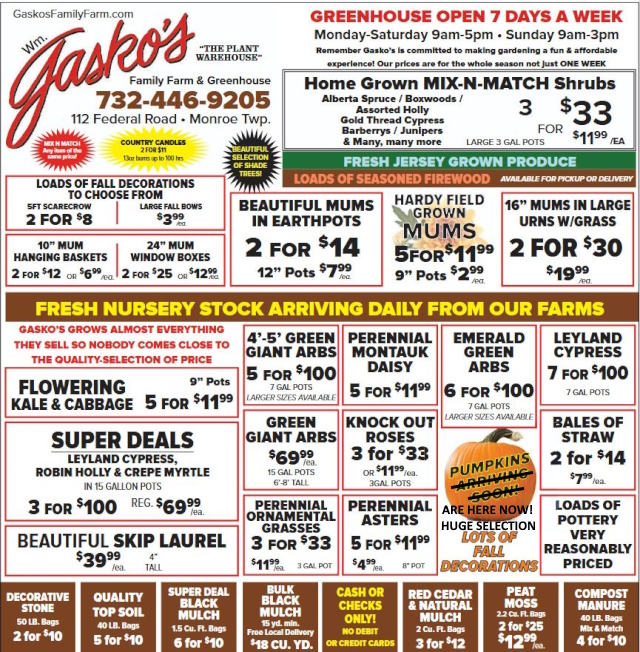 Gasko’s is not responsible for typos.